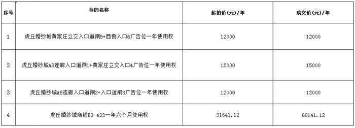 2025年10月21日上午虎丘婚纱城部分项目使用权拍租成交公示