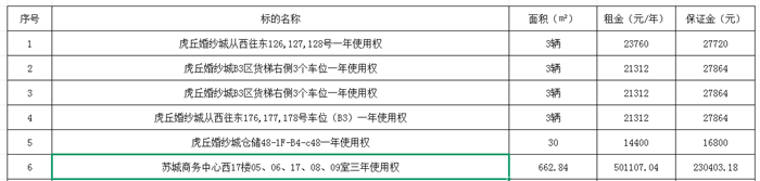 受委托,将于近期对以下标的租赁使用权进行公开拍租,请有意参拍的竞买人在2025年11月3日下午4时前携带有效证件至苏州工业园区贵都花园34-102本公司拍卖厅办理报名登记手续,并缴纳相应标的参拍保证金。